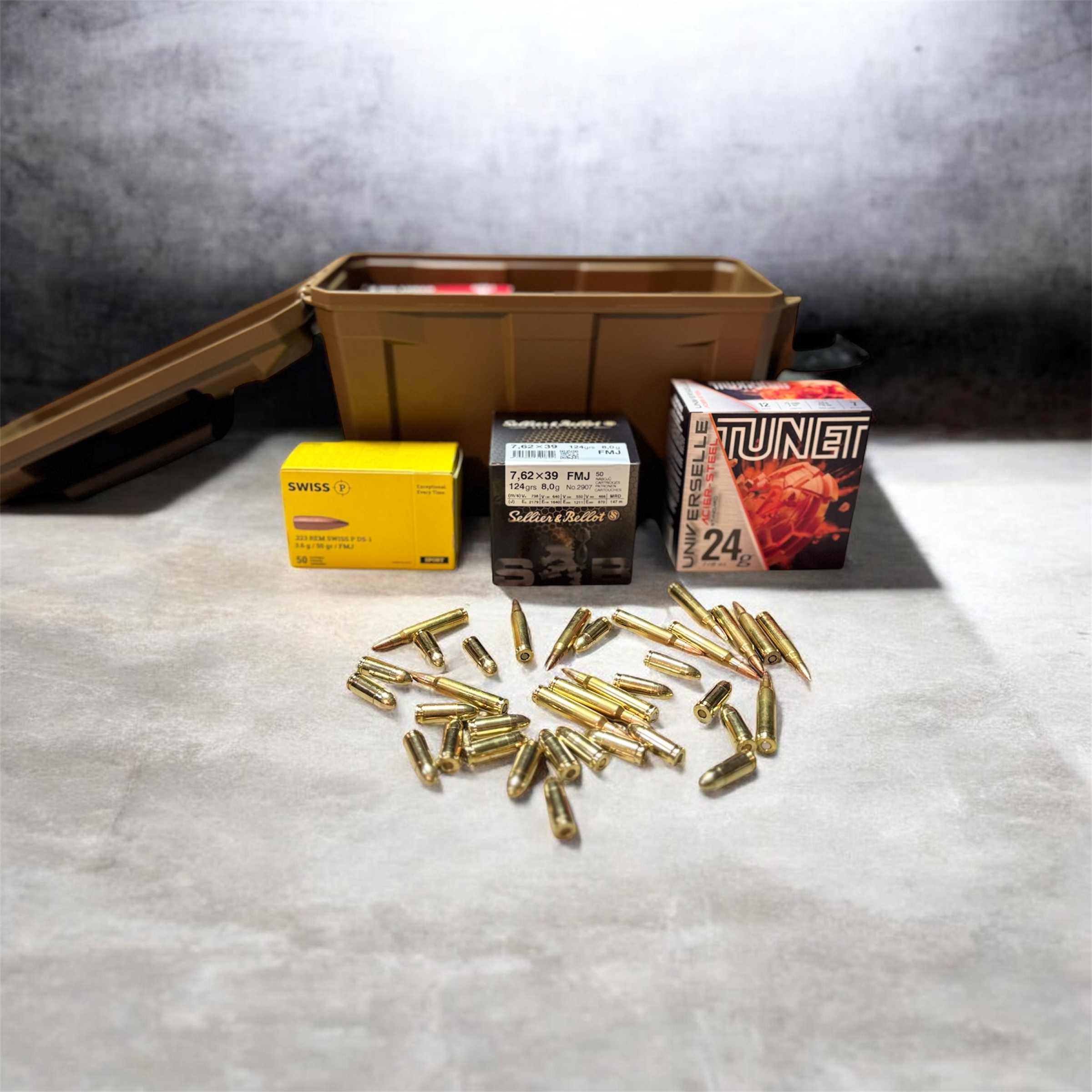 Wir haben eine große Auswahl an Munition in verschiedenen Kalibern und Marken für jegliche Waffenarten.